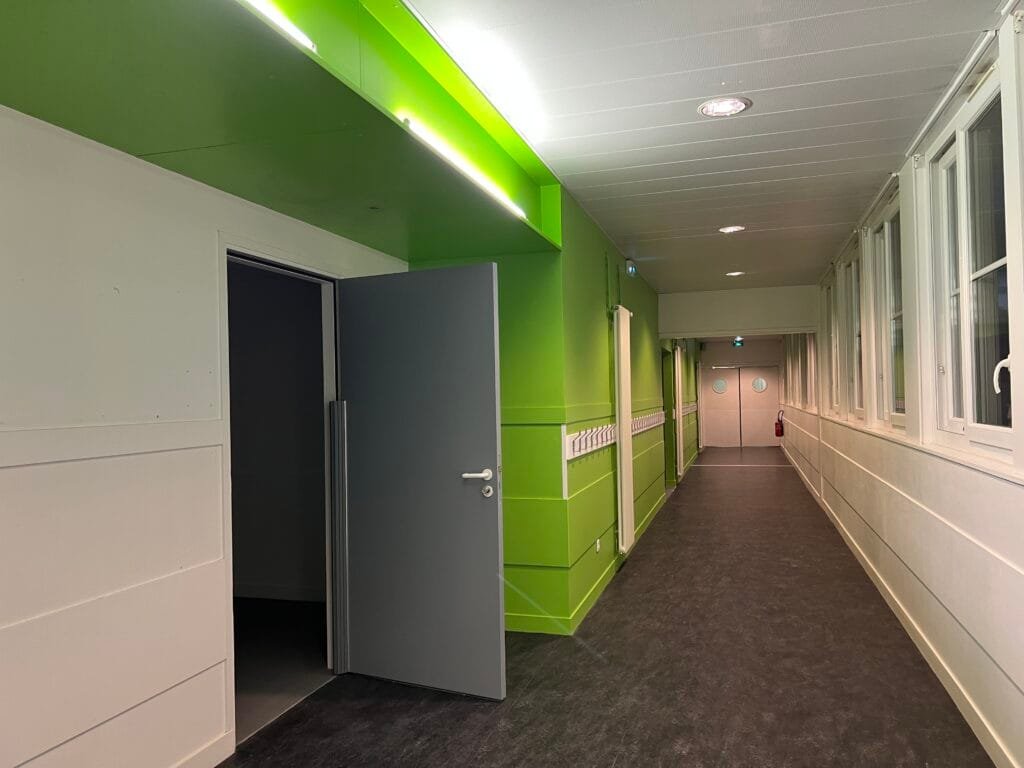 Pour garantir l’accessibilité à tous, l’école dispose de trois entrées distinctes : une pour la maternelle, une pour l’élémentaire et une pour les enseignants. Elle est également dotée de trois ascenseurs, facilitant le déplacement des enfants à mobilité réduite.
