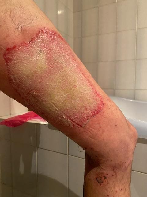Les brûlures, qualifiées de 4e degré, atteignent des parties sensibles : « À un centimètre des organes génitaux », précise-t-il avec effroi. Les médecins, après l’avoir stabilisé, lui proposent de rentrer chez lui avec des antidouleurs, mais la souffrance persiste.